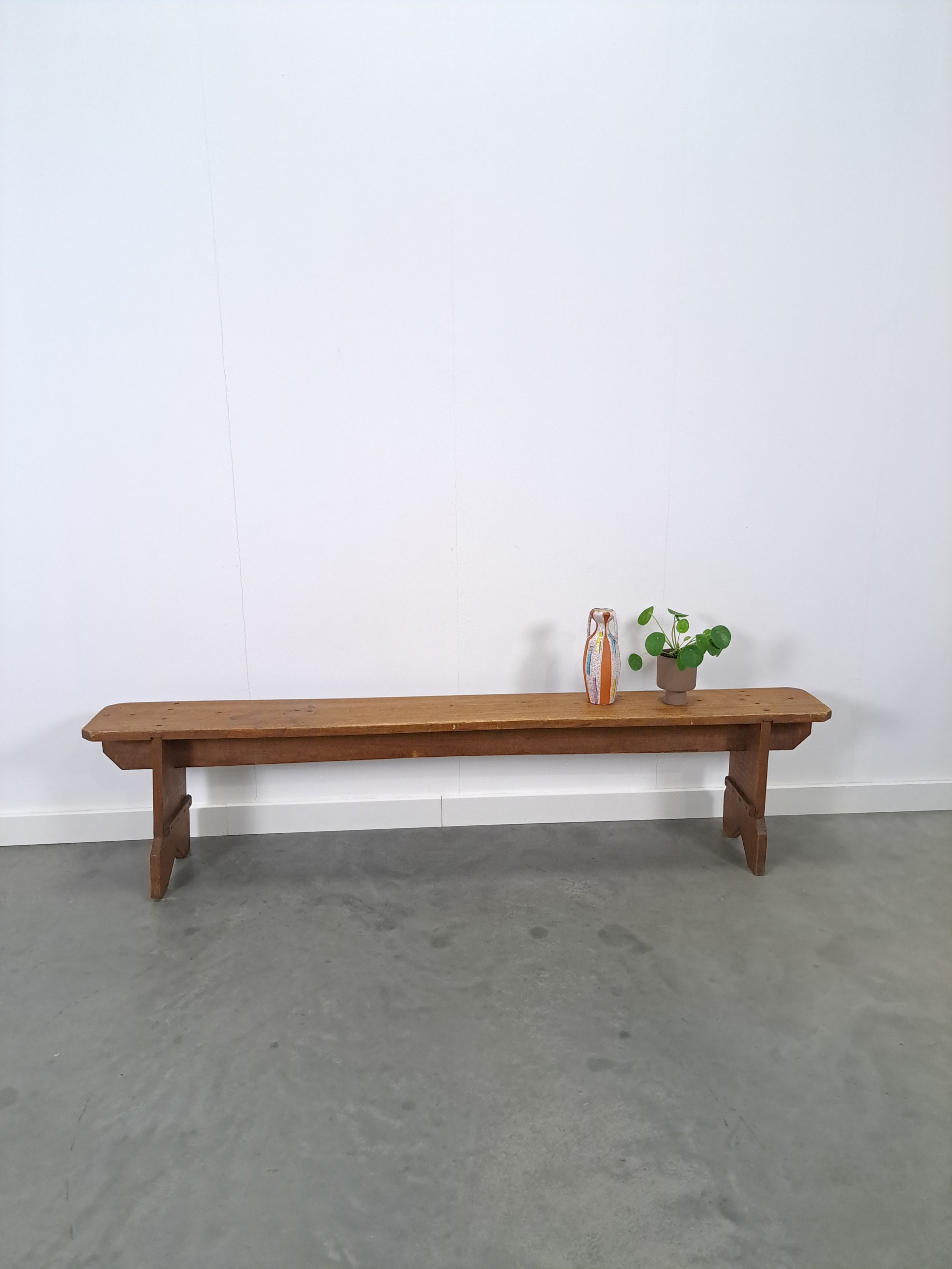 Oude houten bank uit Frankrijk. De bank heeft een mooie stoere geleefde uitstraling en is leuk te gebruiken in een hal of aan een eettafel.
