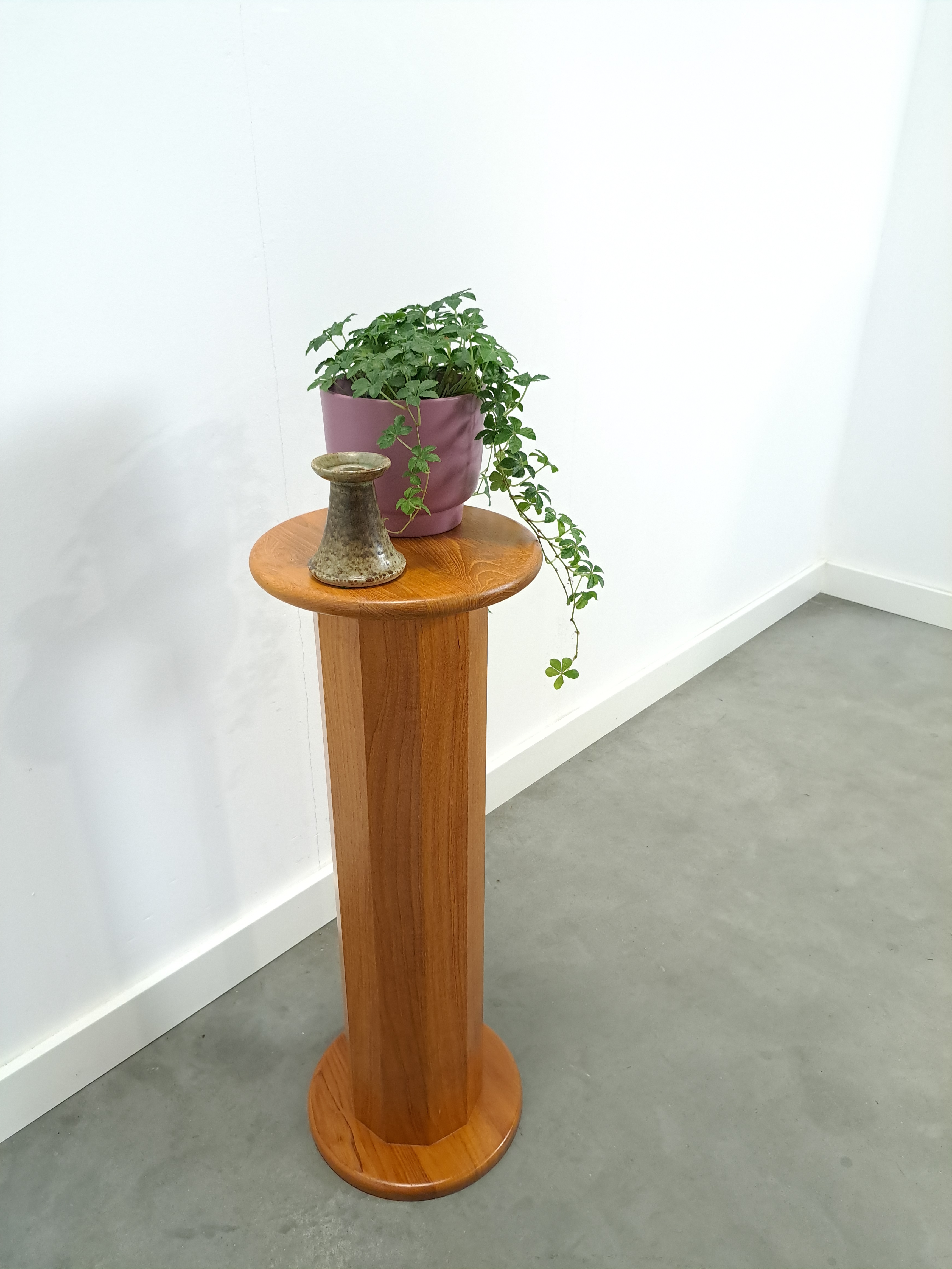 Vintage fineer pilaar. De teakhouten pilaar is leuk te gebruiken als plantenstandaard.